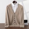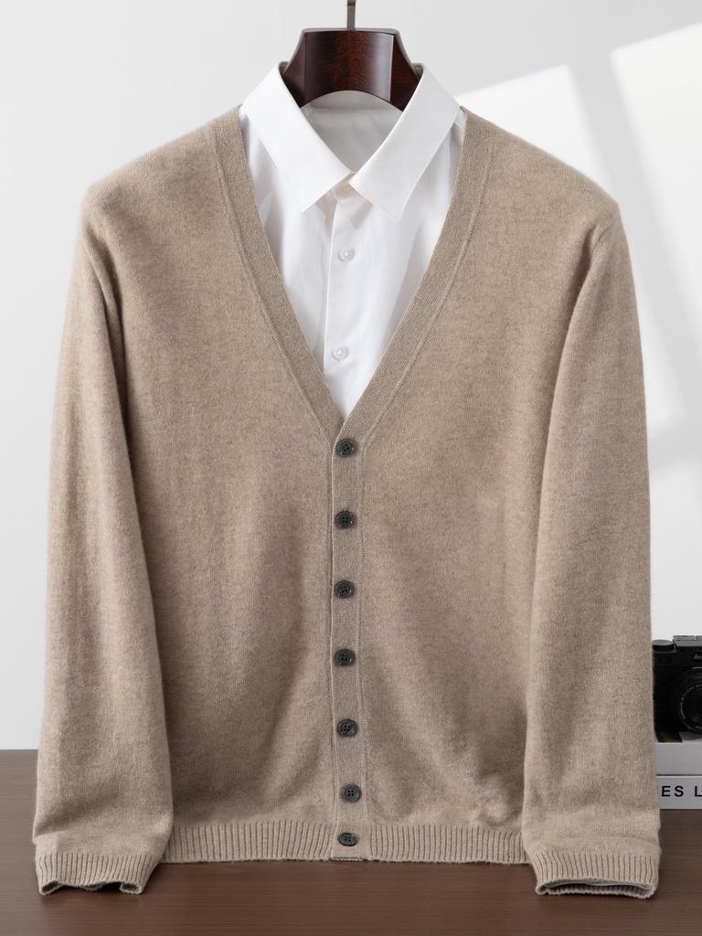 Experience unparalleled comfort with this 100% pure cashmere cardigan, designed specifically for men. Featuring a classic V-neck and long sleeves, this button-up knitwear piece offers a standard thickness that ensures warmth without sacrificing style. Its solid pattern adds a touch of elegance, making it a versatile addition to any wardrobe. The soft, skin-friendly cashmere provides a luxurious feel, perfect for layering over shirts or under coats for any occasion.