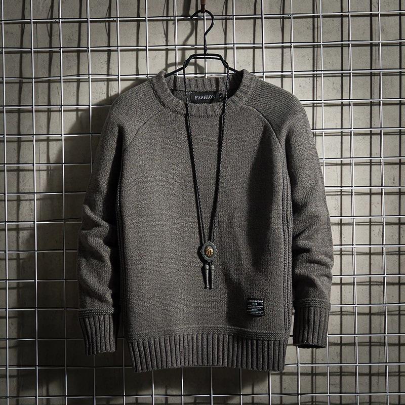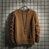 Men's Retro Korean Style Knit Pullover: Warm, Thickened, Round Neck, Long Sleeve for Autumn and Winter.