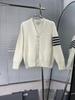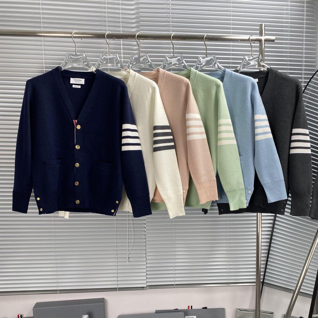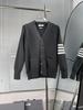 This versatile unisex cardigan offers a stylish loose fit and a classic V-neckline, perfect for layering in any season. The long sleeves feature a distinctive four-bar design, adding a touch of modern flair. Crafted from standard thickness cotton, it provides comfort and warmth without being too bulky. This cardigan combines fashion with practicality, making it an ideal addition to any wardrobe.