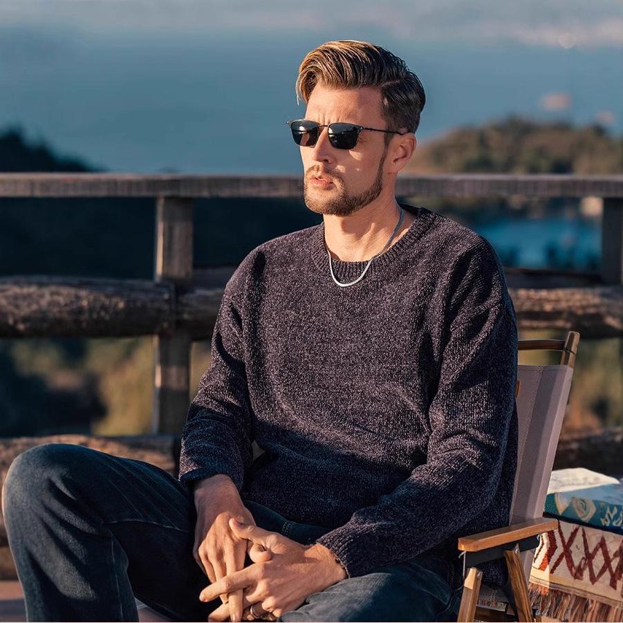 This stylish sweater is perfect for young men looking to stay warm and fashionable during the autumn and winter seasons. Designed with a loose fit, it provides comfort while maintaining a modern silhouette. The round neckline and long sleeves enhance its classic appeal. Crafted from a delicate blend of chenille and vinylon material, this piece offers a unique texture and softness. Despite its thin thickness, the sweater provides ample warmth, making it an ideal top for layering during cooler months.