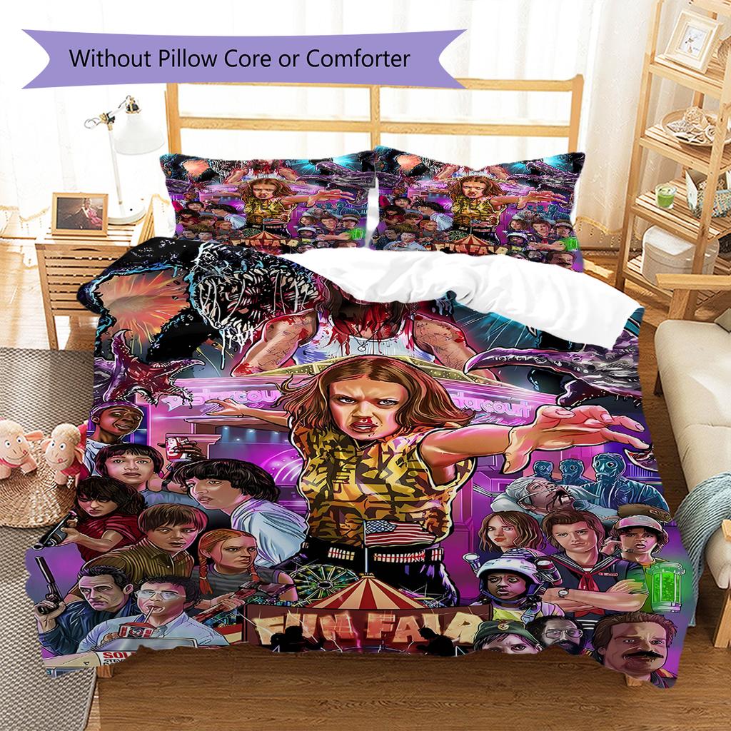 Stranger-thing Pattern Bedding Quilt Set Quilt Cover Pillowcase Home Decoration Gift (1 * Duvet Cover + 2 * Pillowcase, Without Core)