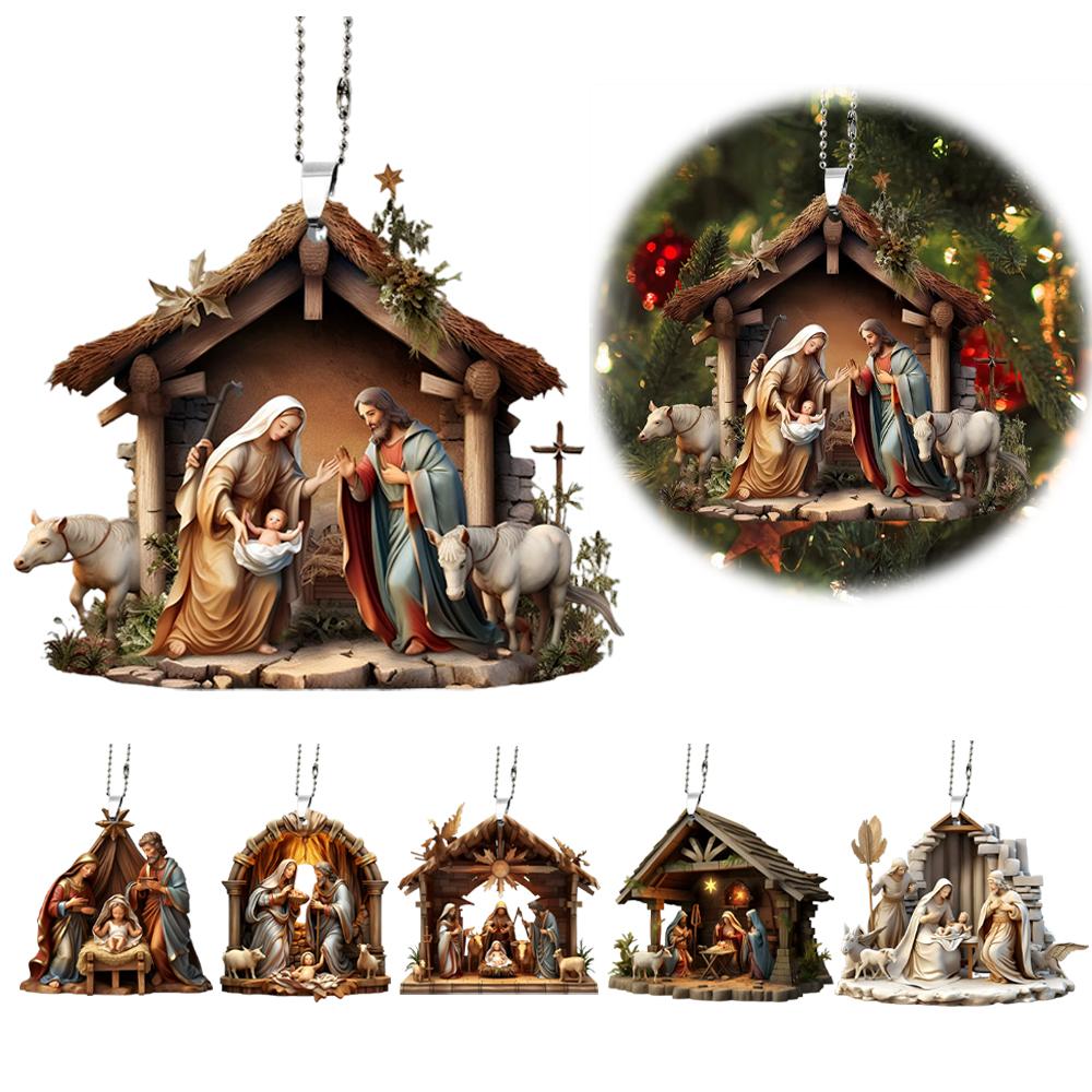 Family Prayer Scene Pendant Religious Symbol Nativity Pendant for Home Car 2025 G2G1