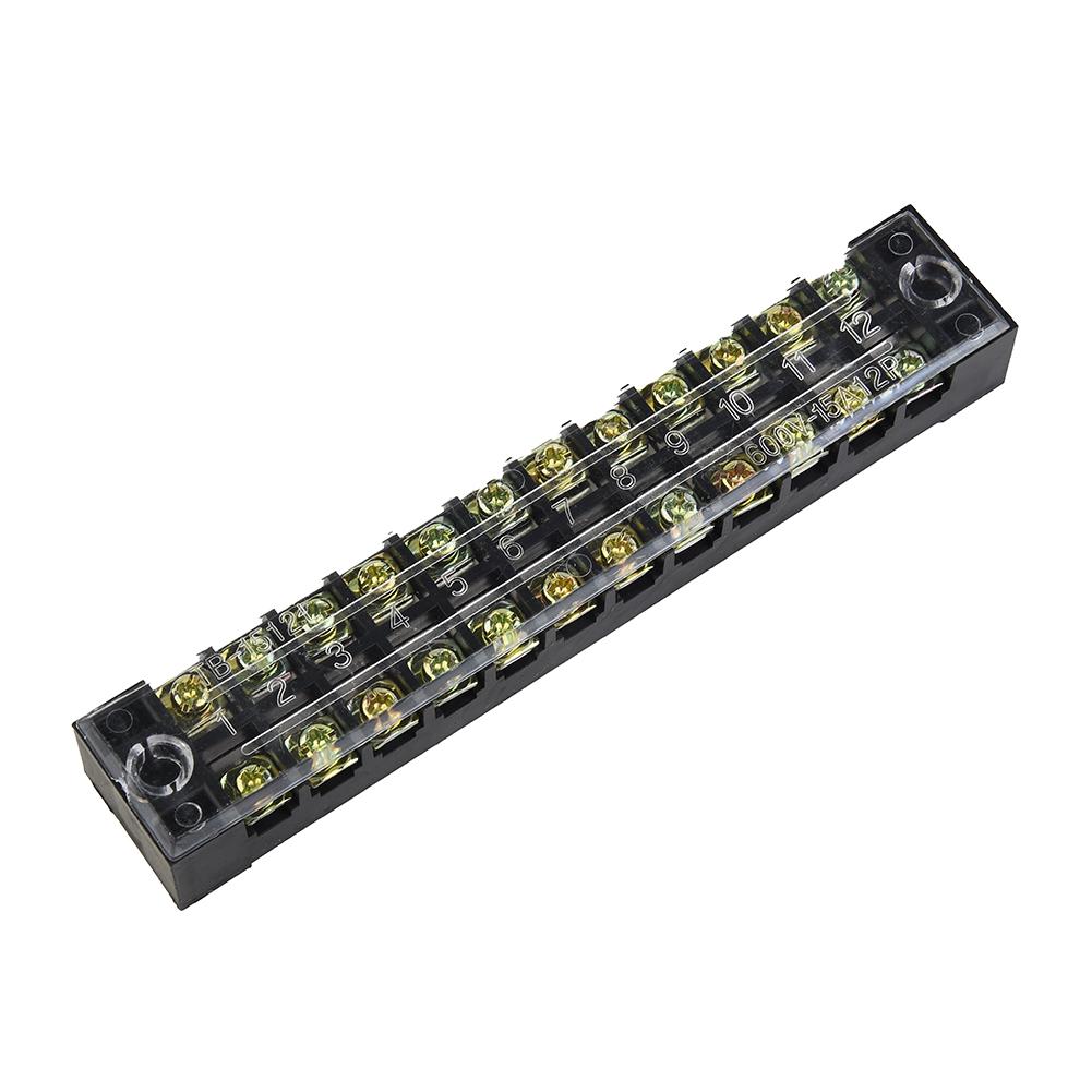 Wire Connection Block 12 Position Dual Row Terminal Block with Plastic Insulating Cover 600V 15A and 2 Accessories