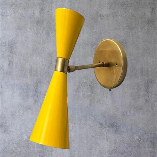 Modern Brass Enamel Wall Sconce Mid Century Yellow and Gold Wall Light