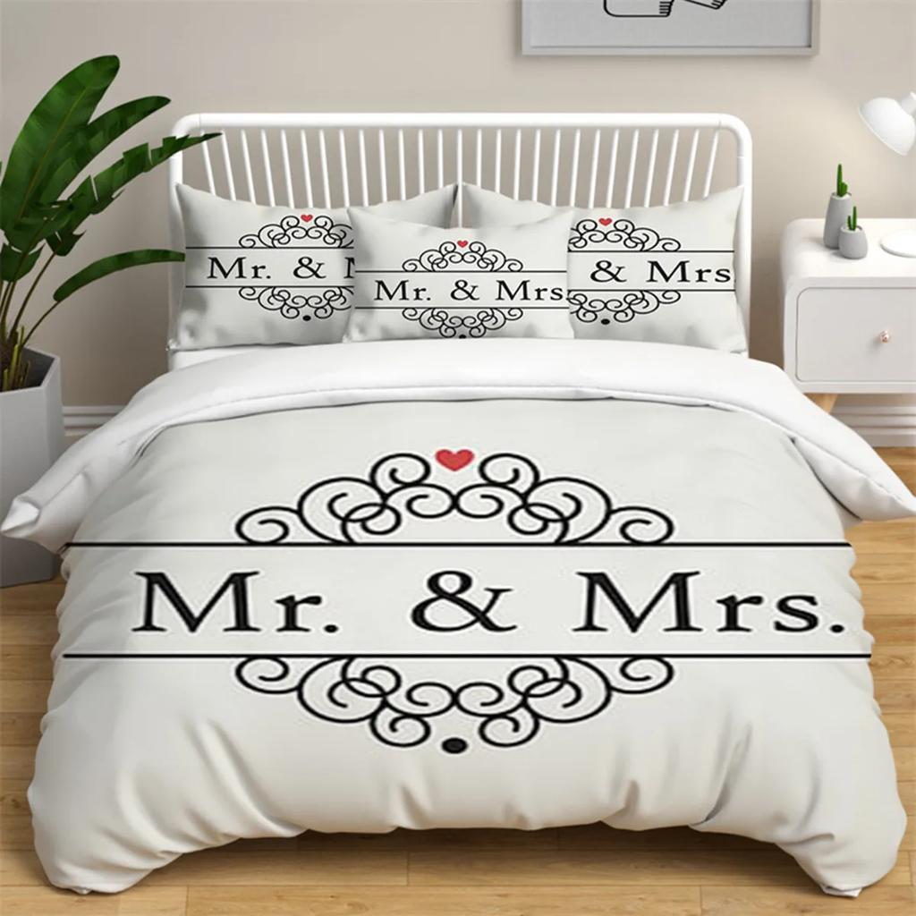 Mr And Mrs Couple Duvet Cover For Women Girls Romantic Valentines Gift Microfiber Quilt Cover For Bedroom Decoration Queen King