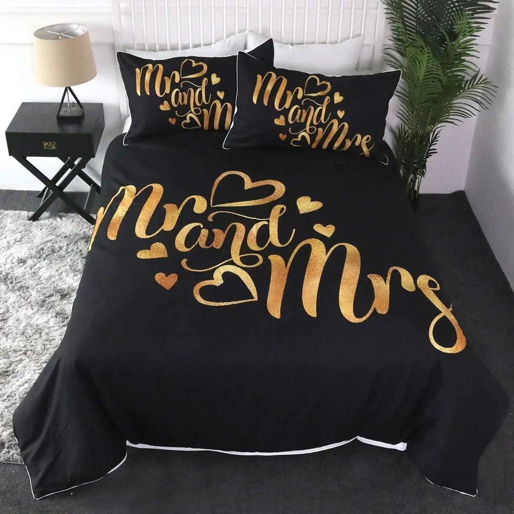 Mr And Mrs Duvet Cover Set King Black Love And Gold Bedding Set For Couples Cute Romantic Valentines Gifts Comforter Cover Sets