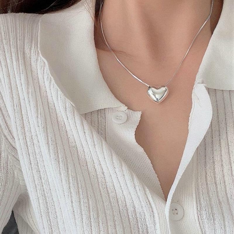 Three-Dimensional Glossy Love Necklace Female Niche Simple Heart-Shaped Peach Heart Neck Chain Collarbone Chain