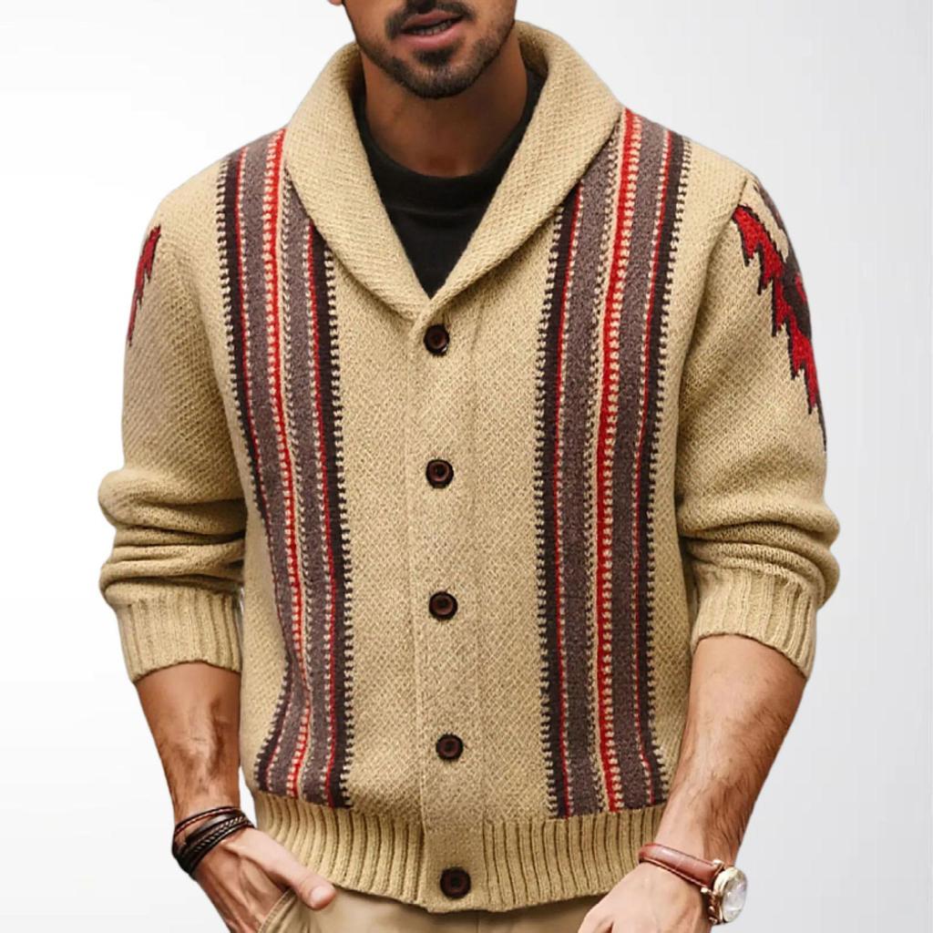 Men's Autumn/Winter Retro Jacquard Knit Cardigan, Long Sleeve, Style SY0056