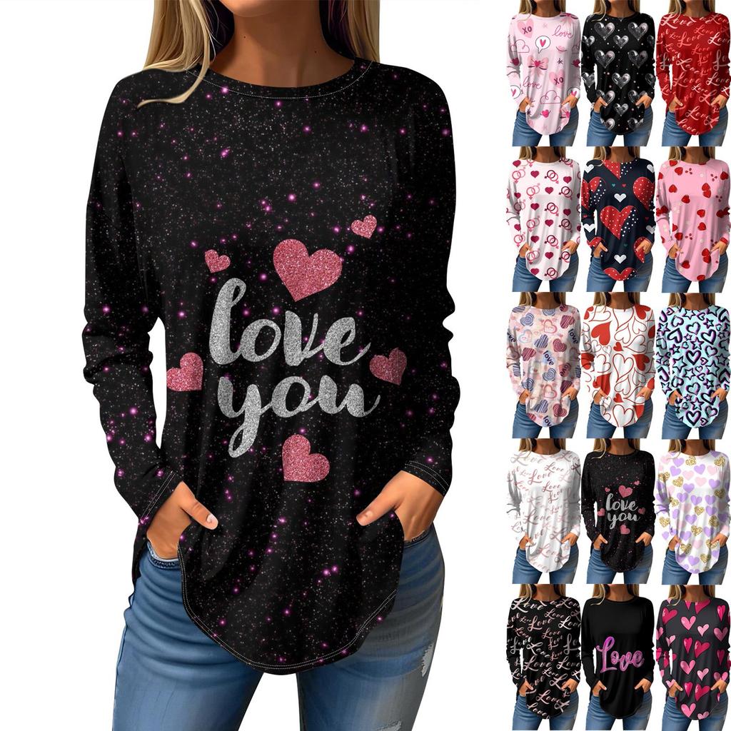 Tee Shirts For Women Fall Casual Long Sleeve Shirts Sweatshirt Vintage Graphic Printing Top Pullover Valentine's Day Tee Shirts For Women Fall Casual Long Sleeve Shirts Sweatshirt Vintage Graphic Printing Top Pullover Valentine's Day Description: 1. Fabric: High quality imitation cotton material, Round neck long sleeves, overall clothing fabric breathable, very comfortable, very smooth for the skin, very comfortable to wear all day long 2. Design: Women's shirt top, casual top, loose cut, comfortable material, women's fashion shirt suitable for work, vacation, beach, school, outing, party, home and daily wear 3. Matching: Pair with tight pants, jackets, jeans, capris, pants, or skirts in spring or summer to make you more elegant and feminine 4. Size: The fabric of this product is elastic. Before making a purchase, please carefully check your size and make a careful selection 5.Cleaning and Care: It is recommended to clean with water temperature below 30 degrees Celsius or cold water to avoid fading. Different monitor colors may have slight color differences, please do not mind Product information: Gender: Female Occasion: leisure Material: Polyester Pattern type: printing : casual Length: regular long sleeve Thickness: standard Cleaning method: wash hands in cold water, hang or dry You will get: 1 women's tops