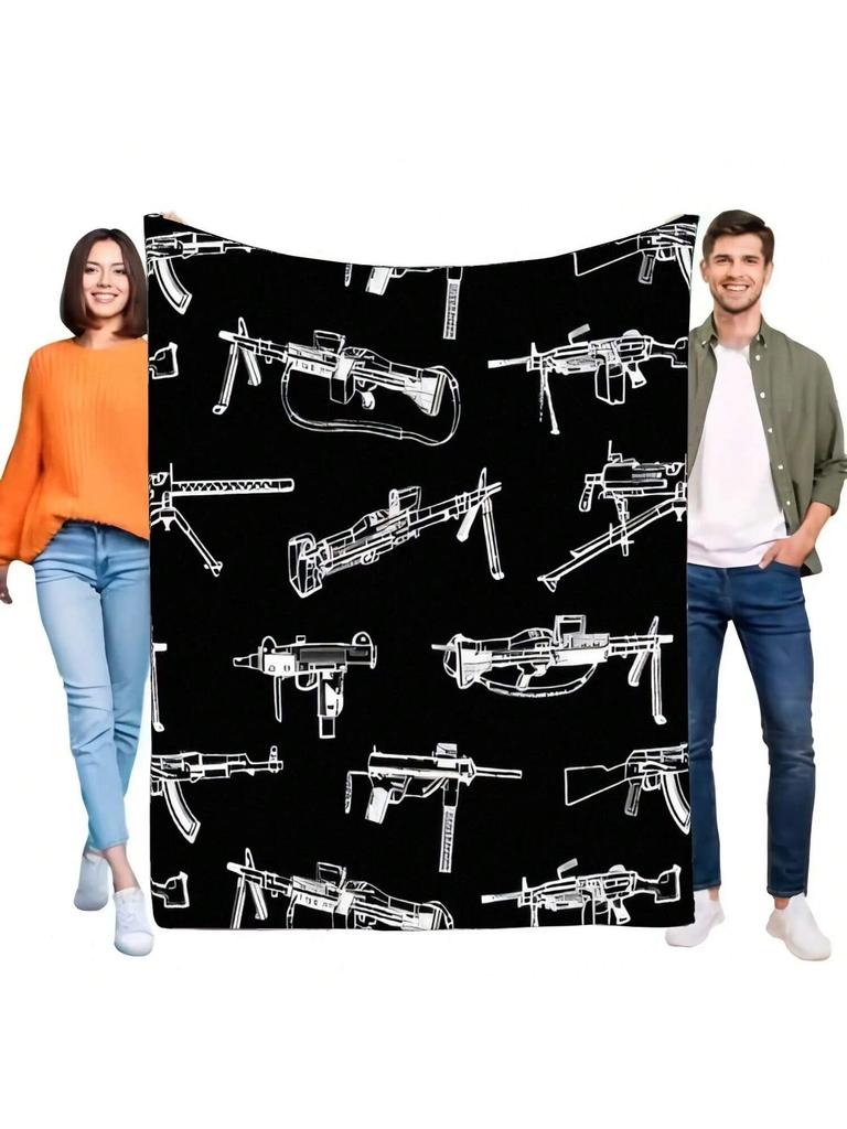 Military Style Gun Pattern Fleece Blanket, Soft Warm Cozy Throw For Bed Sofa Couch, Men Tactical Gamer Hunter Gift