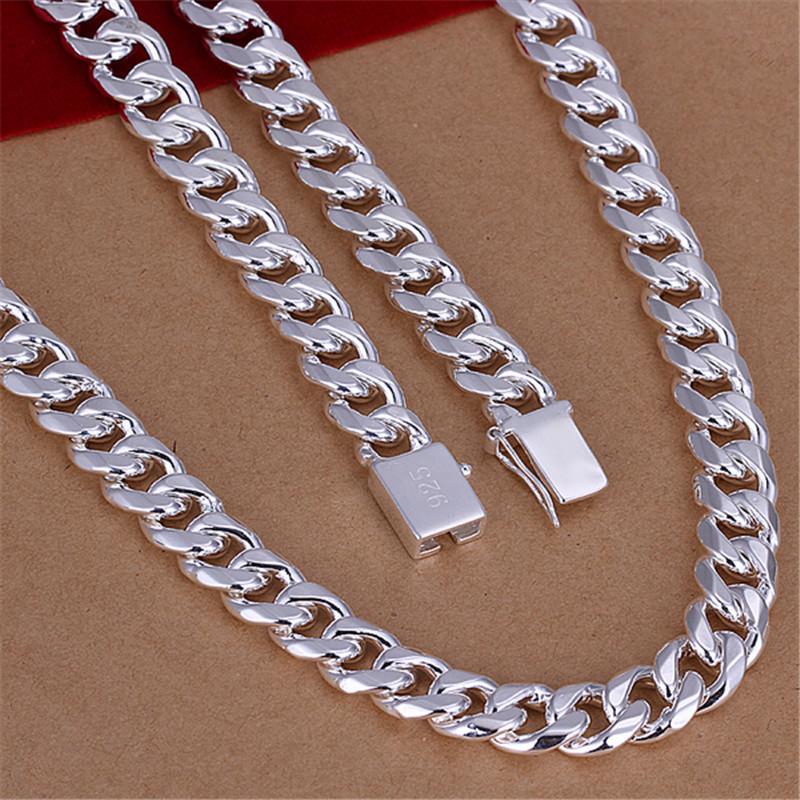 Men Jewelry Necklace Silver -Plated 10mm Square Buckle Side Necklace Fashion Trend Chain