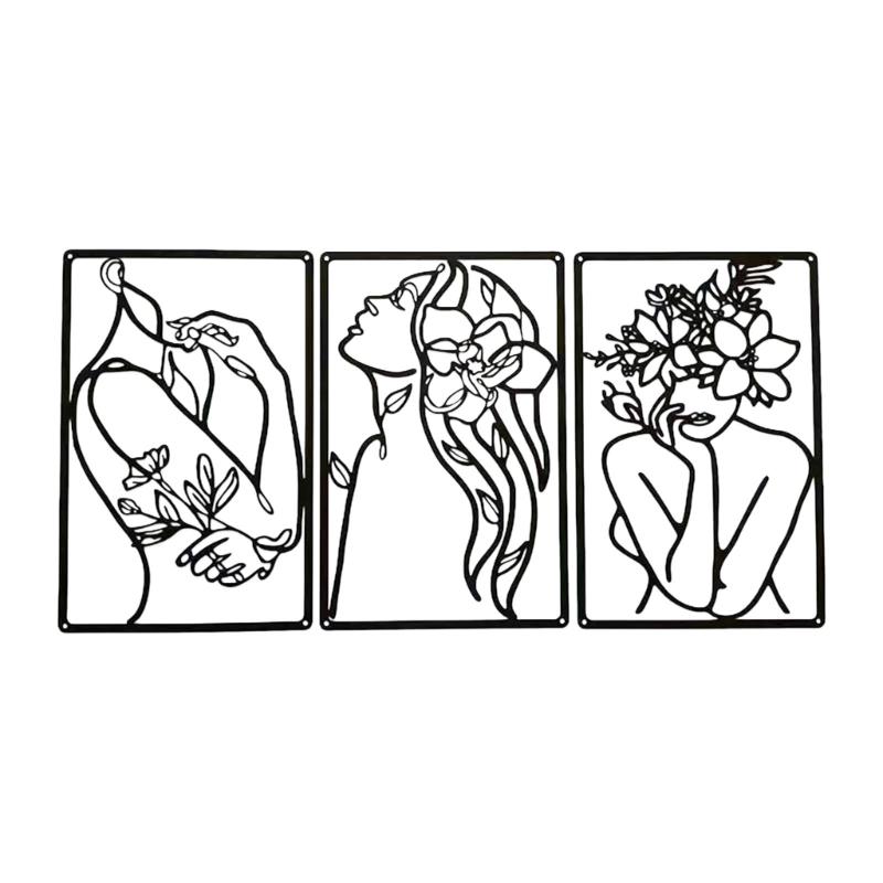 3Pcs Wall Sculptures Black Wall Decor Thick Metal Minimalists Wall Art Decor Hanging Minimalists Abstract Female