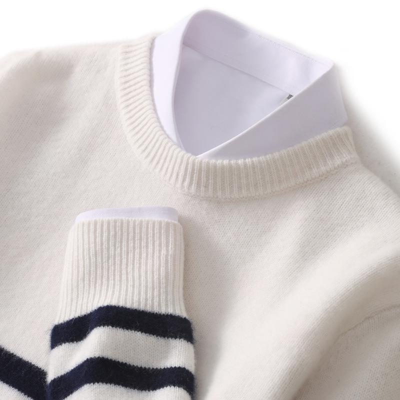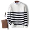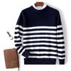 Experience ultimate comfort and style with this thick knit sweater, perfect for the autumn and winter seasons. Crafted from pure wool, it features a cozy round neckline and long sleeves, offering both warmth and a casual appeal. Designed with a loose fit, this sweater is ideal for layering and adding a touch of relaxed elegance to any outfit. The classic striped pattern ensures it remains a timeless addition to your wardrobe, making it a versatile piece for various occasions.