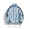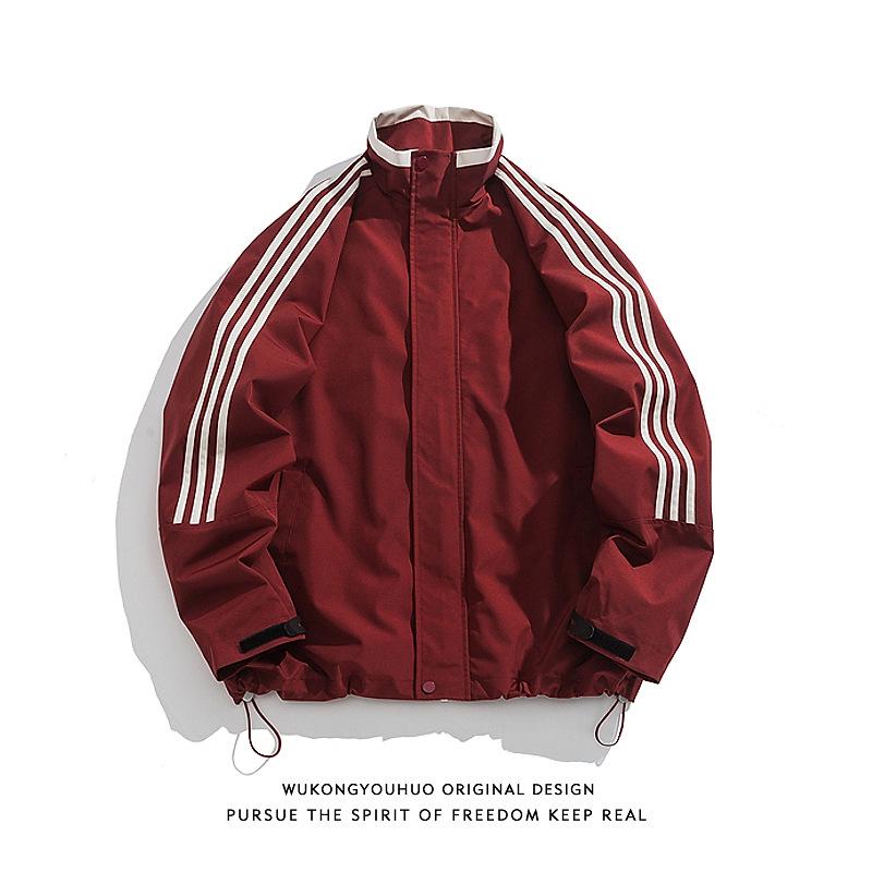 Unisex Retro Three Stripes Stand Collar Windbreaker - Trendy Loose Fit Jacket for Spring/Autumn Streetwear