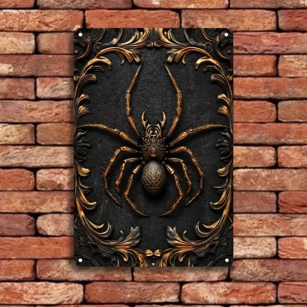 Retro Iron 2DGoldenSpiderCo Vintage Insect Decorative Sign Aluminum Wall Hanging with 3D Golden Spider Decorative Poster