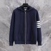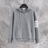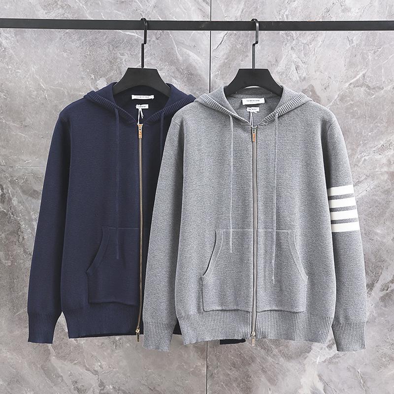 Experience ultimate comfort and style with this unisex hooded knit cardigan, perfect for the 2024 autumn and winter seasons. Designed with a loose fit, it offers a relaxed and cozy feel, ideal for layering. The cardigan features a sophisticated V-neckline and long sleeves, providing both warmth and a touch of elegance. A double zipper adds functionality and versatility to the piece, allowing for customizable wear. The four-bar stripe detail embodies classic academy style, making this cardigan a timeless addition to your wardrobe.