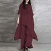 Women's Cotton Linen 2-Piece Casual Sportswear Set with Short Sleeve O-neck Top and Trousers