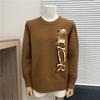 Unisex Color Block Logo Jacquard Round Neck Sweater with Long Sleeves