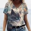 Cat Pattern Summer Loose Women's T-Shirts Casual Comfortable Loose V-Neck Short-Sleeve T-Shirt