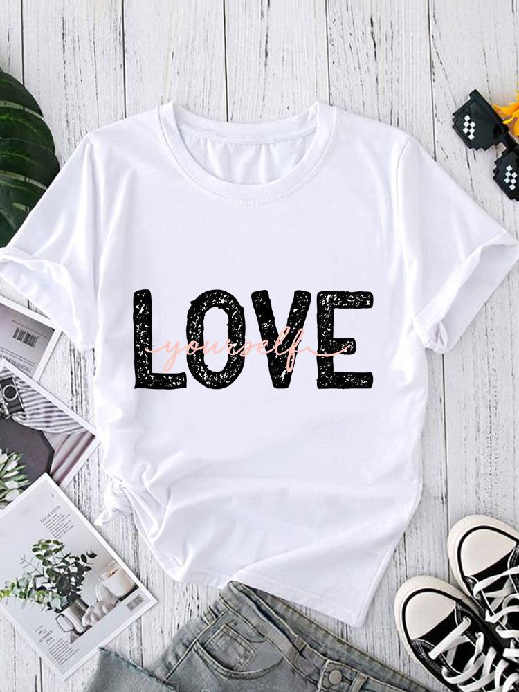 (Asian Size) Love Letter Style Short Sleeve T-shirts Women's Top Print O-neck Fashion Female Casual T Clothing Graphic Tee