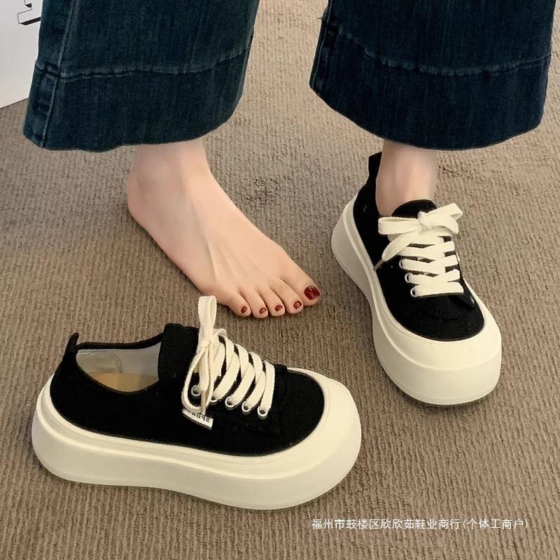Platform Canvas Shoes Women's 2 New Summer Thin Versatile Big Head Shoes Height-increasing Sports and Leisure Board Shoes