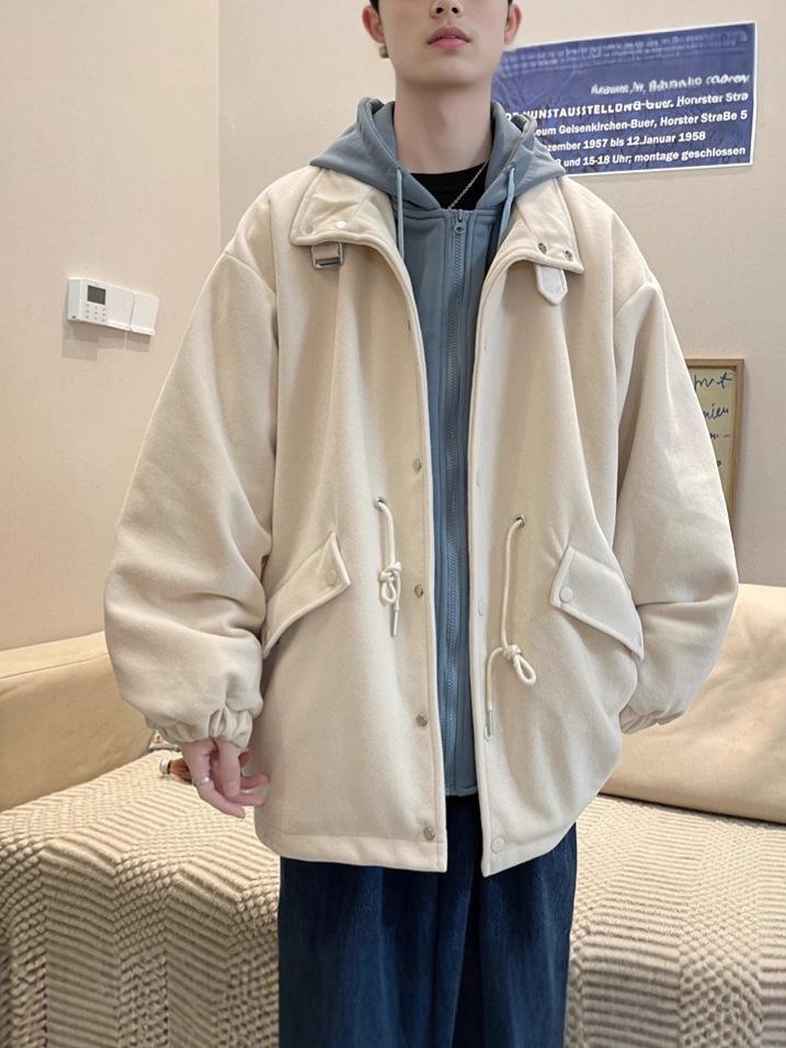 Men's Autumn & Winter Wool Coat: Casual Loose Fit, Hooded Korean Trend, Faux Layered Design.