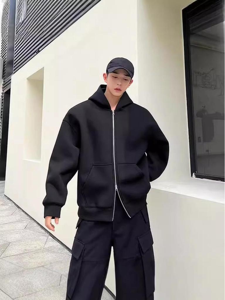 Introducing a stylish addition to your wardrobe, this American-style heavyweight hoodie is perfect for the autumn and winter seasons. Designed with a tailor neckline, it combines comfort and fashion effortlessly. The hoodie features a trendy solid color pattern and long sleeves, making it an essential piece for any outfit. Crafted from quality polyester material with a unique air layer, it ensures warmth without compromising on style. The medium outerwear thickness provides the perfect balance between coziness and breathability. Additionally, the double zipper design adds a cool, modern touch, enhanced by details made of durable oxford cloth. Ideal for men seeking both functionality and a sleek appearance, this hoodie is a great choice for those cooler months.