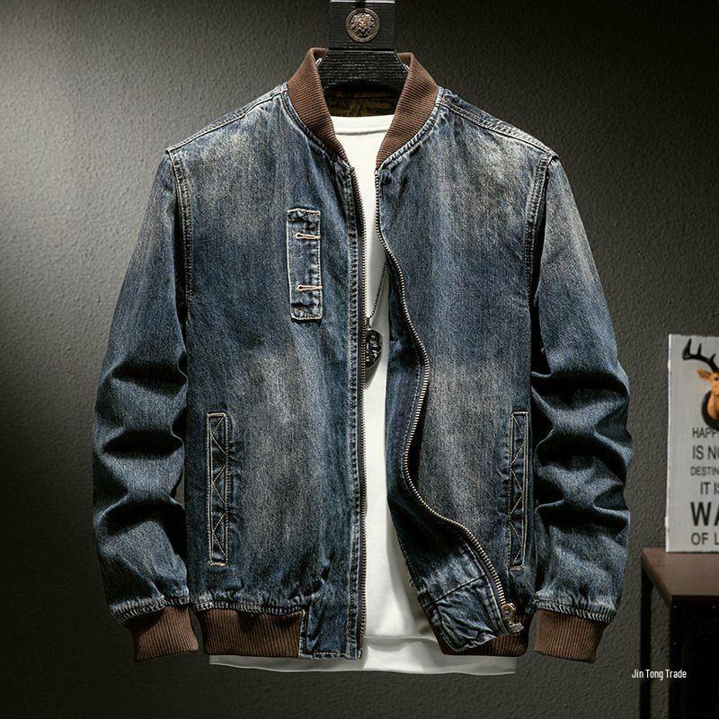 Elevate your style with this men's fashionable denim jacket, perfect for autumn and winter. The jacket features a slim fit design with a stylish baseball collar and a stand neckline, offering a modern twist to a classic retro look. Made from spandex material with a thin outerwear thickness, this jacket ensures comfort without compromising on style. Its unique striped pattern adds a touch of flair, while the long sleeves provide ample coverage. Ideal for the fashion-conscious male, this jacket is an essential addition to your seasonal wardrobe.