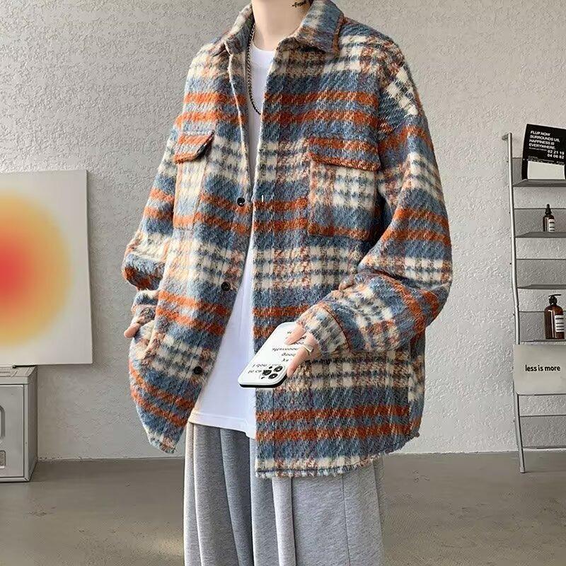 Hong Kong Retro Plaid Woolen Student Jacket: Loose Fit, Versatile Men's Long-Sleeve Top