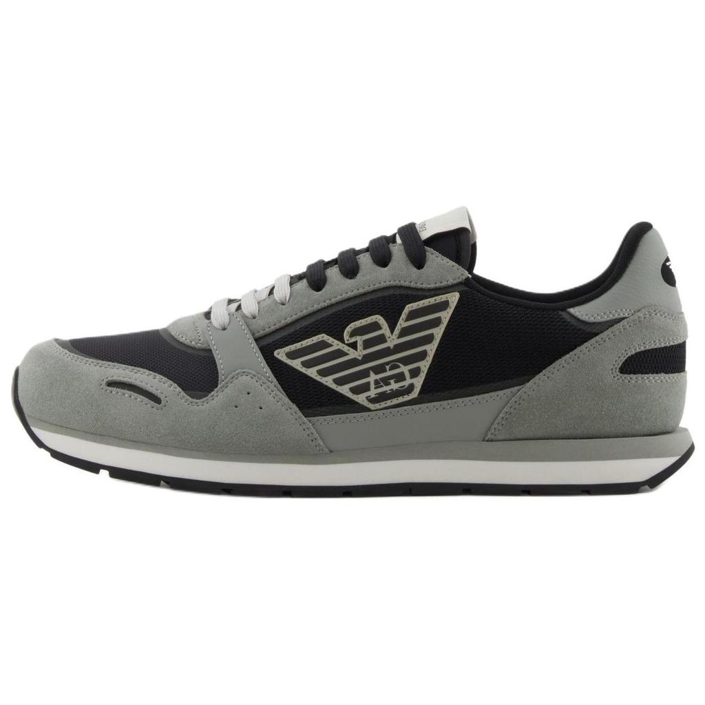 Emporio Armani Leather Round Toe Lace-Up Low-Top Casual Shoes Men Sneakers Green Black X4X537XN730U549