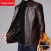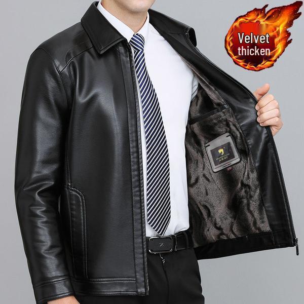 This men's leather jacket is designed for the autumn season, offering a comfortable and stylish option for middle-aged individuals. It features a stand neckline that adds a touch of sophistication, while the plus velvet thick style ensures warmth and coziness. Perfect for casual outings, this jacket combines elegance and practicality in one versatile piece.