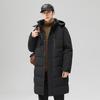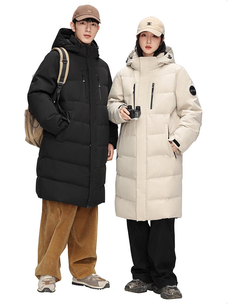 Stay warm and stylish this winter with our high-end long over-the-knee down jacket. Designed for a loose fit, this unisex coat is filled with 90% white duck down, providing exceptional insulation against the cold. The solid pattern and polyester material give it a sleek and modern look, while the hood offers additional protection from the elements. Perfect for an effortlessly chic winter wardrobe, this jacket combines comfort and fashion for both men and women.