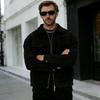 Introducing a stylish men's jacket that perfectly combines European and American fashion influences. Crafted from high-quality polyester, this jacket features a luxurious suede velvet finish that offers both comfort and durability. It boasts a medium outerwear thickness, making it suitable for various weather conditions. The jacket's design includes a tailored neckline with a sophisticated lapel, adding a touch of elegance to your outfit. With a solid pattern and long sleeves, it is perfect for any casual or semi-formal occasion. The jacket is thoughtfully designed with large pockets, providing ample storage space for your essentials, making it both practical and fashionable for modern men.