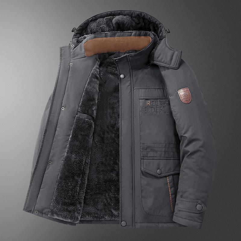 This Men's Thickened Cotton Winter Jacket is designed for middle-aged and elderly individuals seeking warmth and comfort in cold weather. The jacket features a stand neckline and an insulated thickness, providing excellent protection against chilly temperatures. Crafted from durable nylon with a nylon fur lining, it’s tailored for a loose and comfortable fit, available in plus sizes to ensure ample coverage and mobility. This cold-resistant outerwear is a practical choice for those who prioritize functionality and style during the winter months.