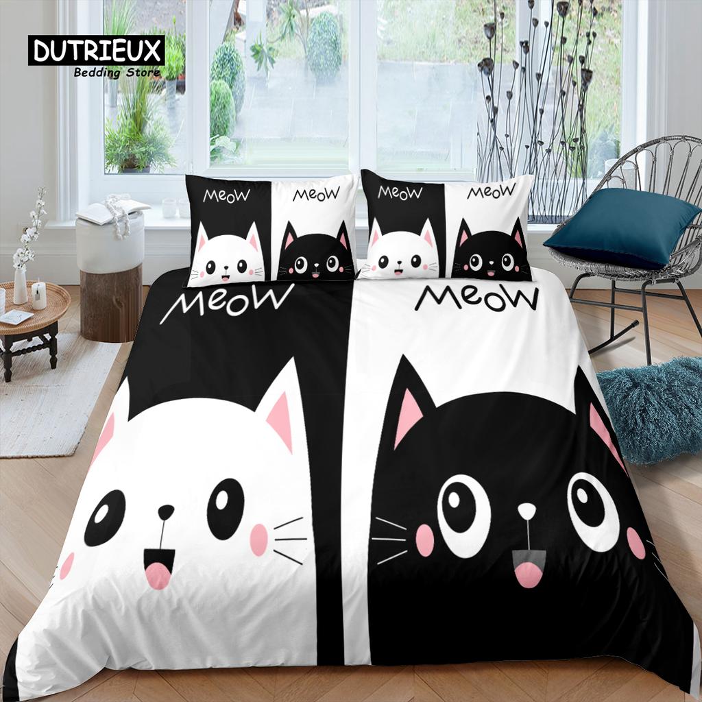 Home Living Luxury 3D Couple Cat Print Bedding Set Duvet Cover Pillowcase Kids Bedding Set Queen and King EU/US/AU/UK Size