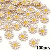 100pcs White Flower Pendant Mini Floral Chrysanthemum Pendant Enamel Alloy Daisy Pendant for Jewelry Making Bracelet Necklace