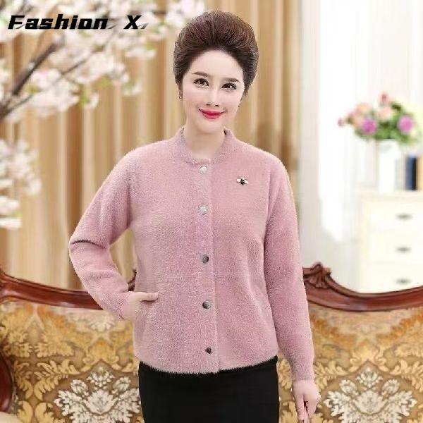 Long Sleeve Women's Cardigan Fashion Soft Imitation Mink Knitted Cardigan Woman Loose Button Up Warm Outwear