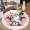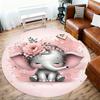 1PC Elephant Flowers Pink Round Chair Mat Area Rug - Non-Slip, Floor Mat for Office, Bedroom, Home Decor Christmas Gift C0528092