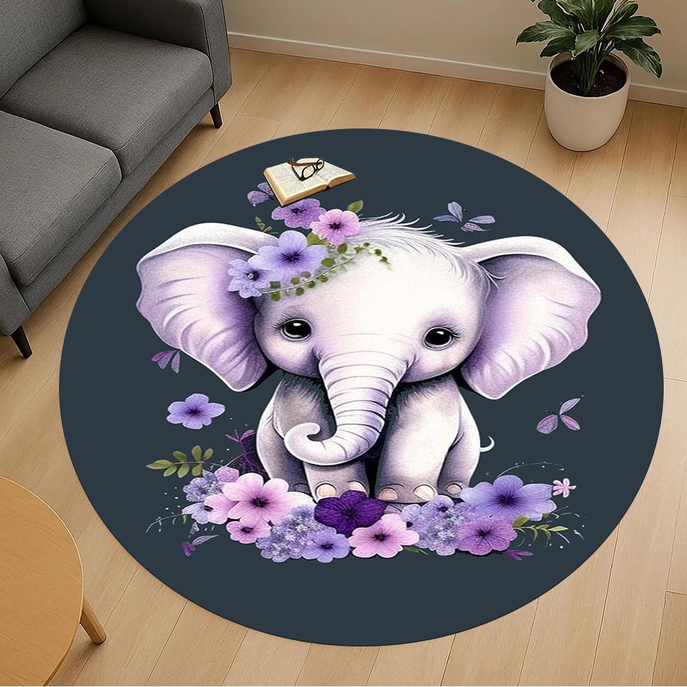 1PC Elephant Flowers Butterflies Round Chair Mat Area Rug - Non-Slip, Floor Mat for Office, Bedroom, Home Decor Christmas Gift C0528028