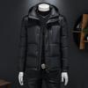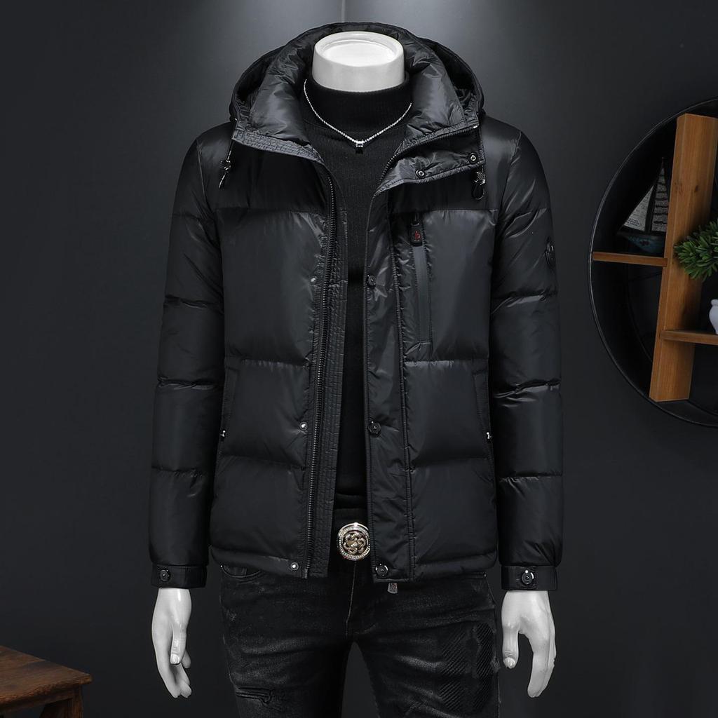 Experience warmth and style with this European men's slim fit hooded down jacket. Crafted with a blend of insulated polyester material, this jacket features a stand neckline and a solid pattern for a sleek, modern look. The filling is sumptuous duck down, ensuring you stay cozy in colder climates. The slim fit design provides a flattering silhouette, while the hood and polyester fur detailing offer additional comfort against the elements. Perfect for those seeking both functionality and fashion in their winter outerwear.
