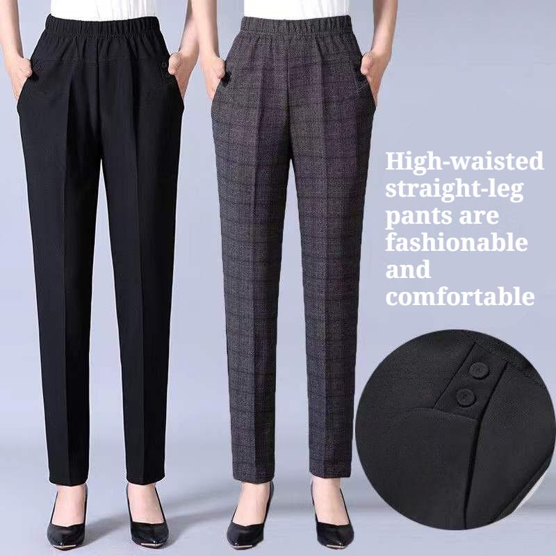 Plus Size Autumn Spring Women Trousers Oversize Elastic High Waist Loose Casual Pants Middle-aged Female Stretch Pants