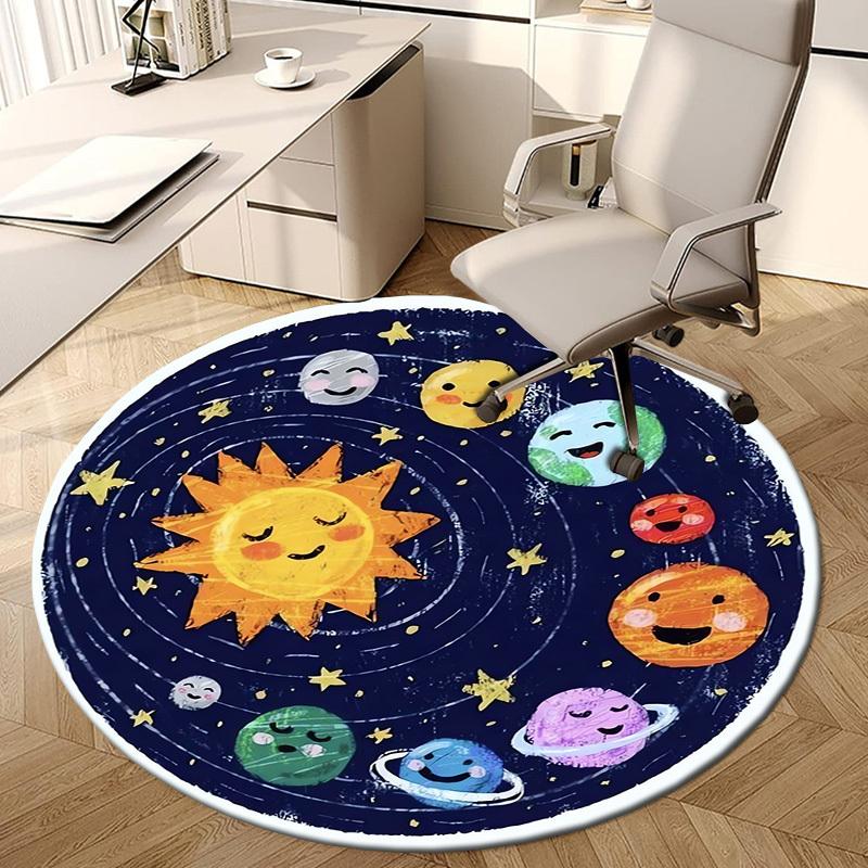1pc Solar System Planets Cartoon Round Carpet, Made of Polyester,Office Chairs, Living Rooms, Or Bedrooms, a Cool Rug for The Living Room.ydt26072