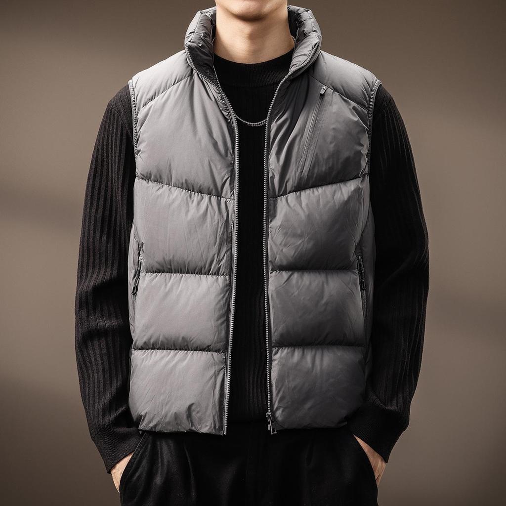 This stylish stand collar down vest is designed for men seeking both comfort and fashion during the autumn and winter seasons. Filled with duck down, it provides excellent insulation while maintaining a medium thickness for versatility and ease of layering. The solid pattern and polyester construction ensure durability and a sleek, modern look. Ideal as warm workwear or for casual outings, this vest combines functionality with contemporary style.