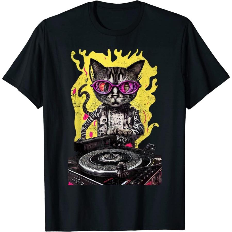EYDE Vintage Music Cat DJ Turntables Cool Style T-Shirt