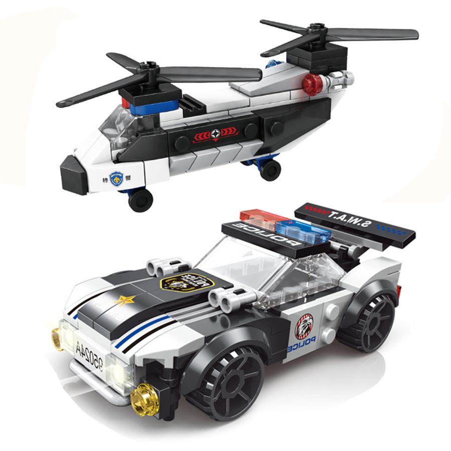 SWAT City Police Plane Building Blocks Dual-Rotor Helicopter Famous Car DIY MOC Classic Model Bricks for Children Kits