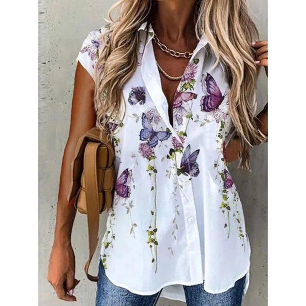 Summer Fashion Breasted Lapel Short Sleeved Shirt For Women
