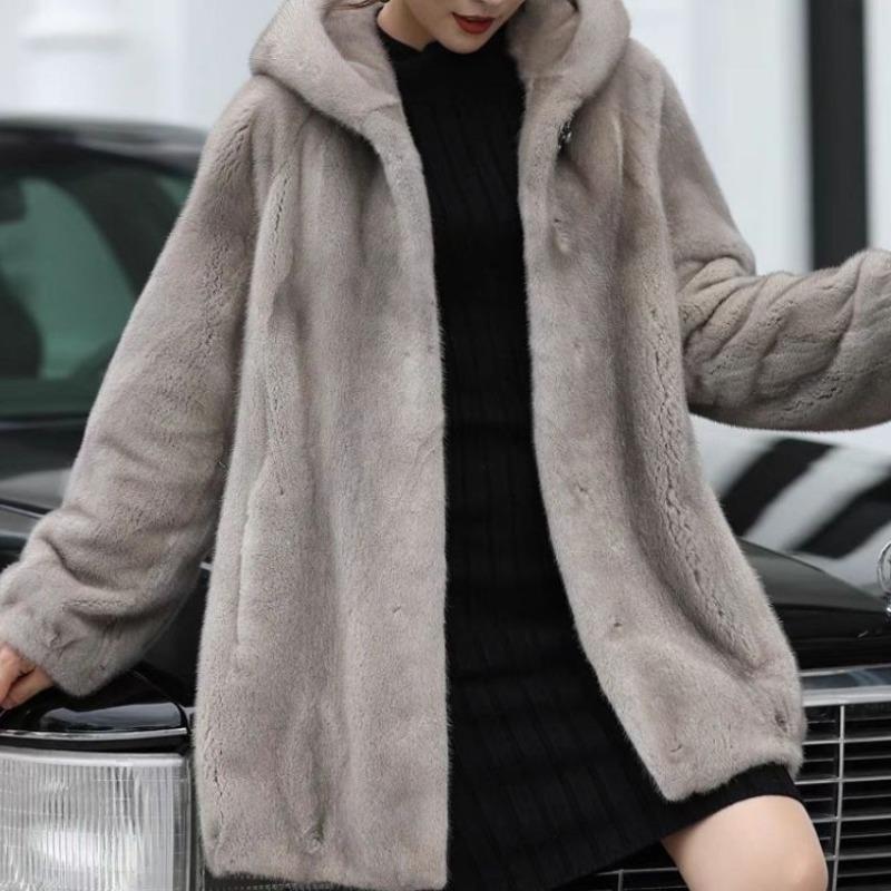 Coat Women's Medium and Long Mink Velvet Winter Fur Coat Thickened Whole Mink Hair Thickened Mink Black
