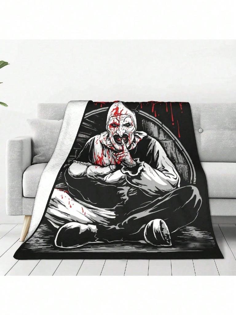 Terrifier Horror Movie Halloween Knitted Blanket Art The Clown Flannel Throw Blankets Bed Couch Lightweight Breathable Rug Piece