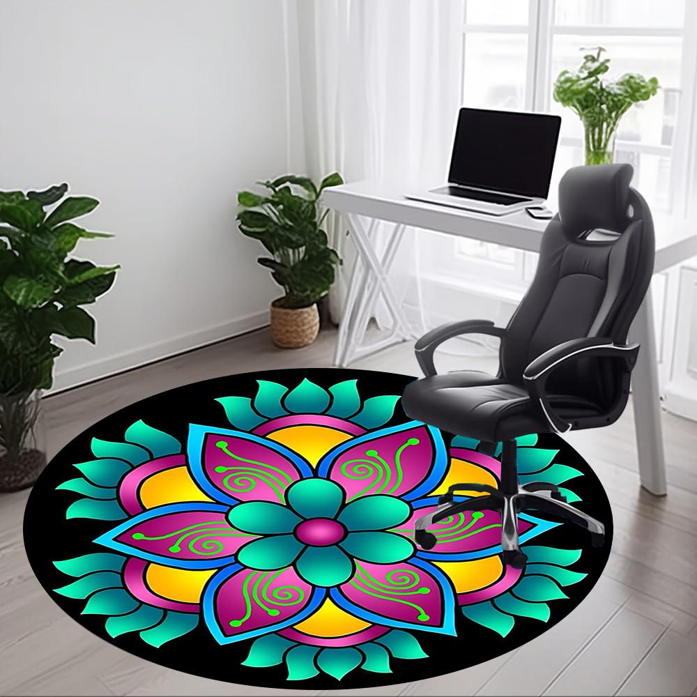 1pc Colorful Flower Mandala Chair Carpet for Office, Round Polyester Mat, Indoor Decor for Office, Easycare Fabric, Washable Non-slip Area Carpet