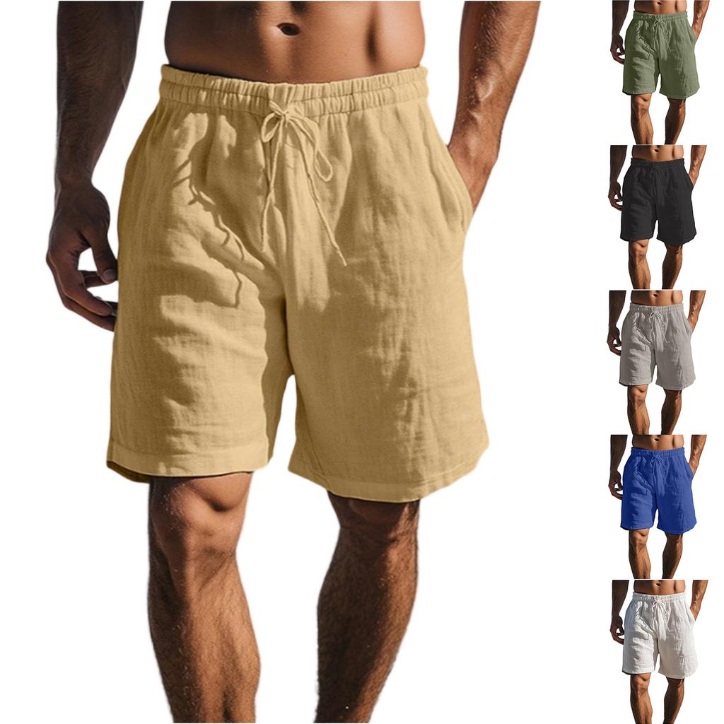 Men's -color Casual Cotton-linen Loose Five-inch Shorts